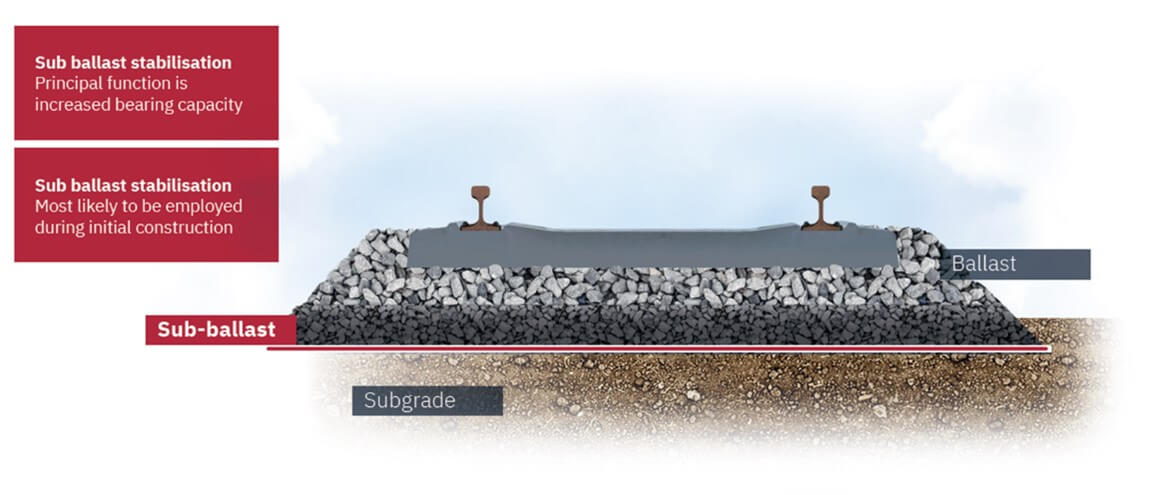 Khi điều kiện nền đất biến đổi, độ cứng của nền đường sắt sẽ bị ảnh hưởng, dẫn đến lún không đều và biến dạng đường ray. Độ cứng của nền đường ray có tác động trực tiếp đến độ biến dạng của đường sắt khi chịu tải trọng, do đó việc gia cố cơ học lớp đá ba lát phụ hoặc nền móng sẽ giúp tăng độ cứng, cho phép tàu chạy ở tốc độ cao hơn mà không làm giảm tuổi thọ của kết cấu hạ tầng đường sắt. Giải pháp này cũng góp phần giảm thiểu sự biến đổi, đảm bảo độ ổn định nền đường ray nhất quán hơn và cải thiện chất lượng vận hành cho hành khách.